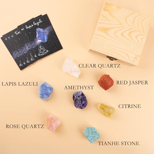 Healing Crystals for Beginners – 7 Chakra Stones and Crystals Healing Collection -Including Amethyst, Rose Quartz, Lapis Lazuli, etc.with Guide Book, Natural Raw Crystals for Meditation
