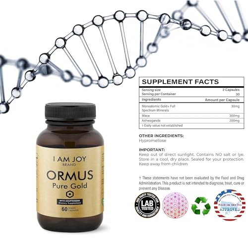 I Am Joy co. Ormus Gold Capsules Monoatomic Elements with Adaptogens Maca and Ashwaganda | May Help Balance Mood, Decalcify Pineal Gland, Repair DNA, Enhance Relaxation – 60 Vegan Capsules