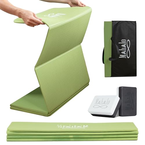 Foldable Yoga Mat + Carry Bag, 6mm 7-fold Workout Mat, Easy to Store, Anti-Slip Folding Exercise Mat for Yoga, Pilates, Home Workouts, and Floor Exercises