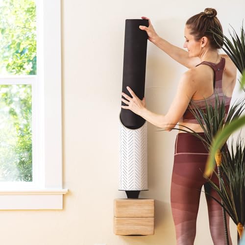 The Homi Yoga Mat Tube allows you to clean up your yoga space, or fitness gym, from clutter and enhance your daily wellness routine with smart and sustainable storage. This designer decor stores and organizes your yoga mat or foam roller, keeping your props tidy and accessible for easy use. Additional Yoga Blocks and Yoga Block Storage (Floor Stands and Wall Brackets) are sold separately. Consciously crafted by hand in the USA using eco-chic design paper, 100% recycled durable paper, wood fiber pulp, and formaldehyde-free wood panel. Friends do not let friends practice with plastic! Breathe easy as you flow with Mache eco-friendly and non-toxic yoga gear.