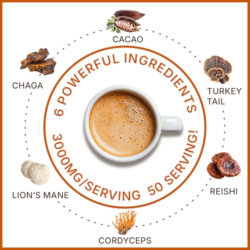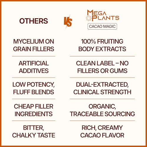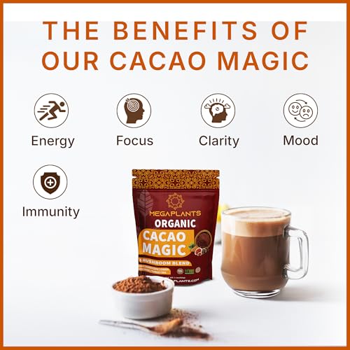 MegaPlants Cacao Magic (50 Servings) | Superfood 5 Mushroom Blend | Lions Mane, Reishi, Chaga, Cordyceps, Turkey Tail | Smoothie, Hot Chocolate, Coffee Alternative