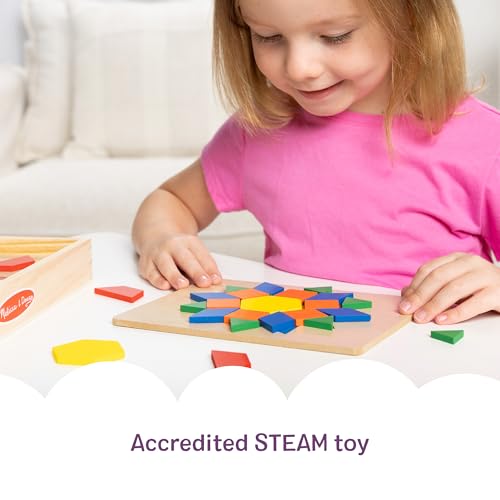 Melissa & Doug Pattern Blocks and Boards with 120 Multi-Colored Wooden Shape Tiles, 5 Double-Sided Puzzle Boards, Tangram Puzzles, Montessori Toys for Girls & Boys