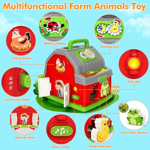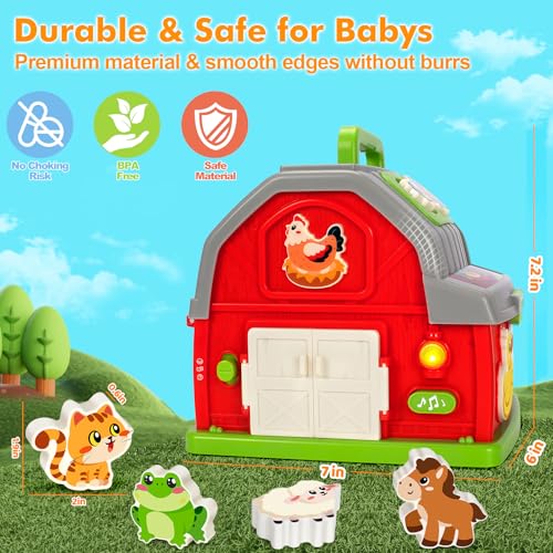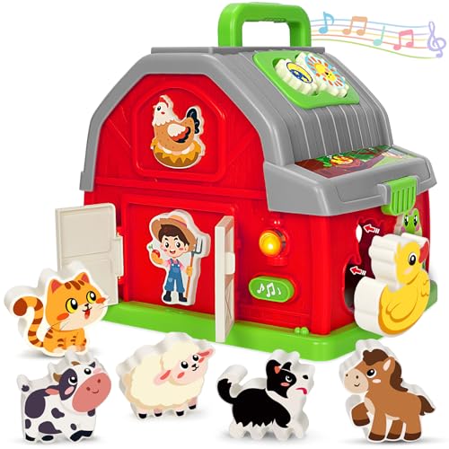 Montessori Learning Toys for 1 2 3 Year Old Boys Girls, Musical Farm Animals for Toddlers 1-3, Interactive Barn Toy with Light & Sound, Birthday Gifts for Baby Kid Toddler Age 12-18 Months