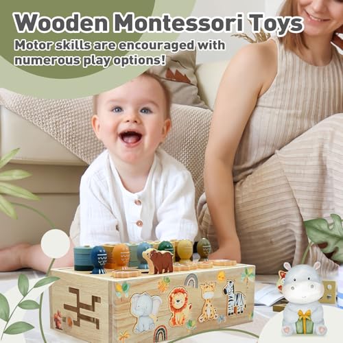 Montessori Wooden Toys for 1+ Year Old, 9 in 1 Montessori Toddler Toy with Preschool Educational Toys for 2+ Year Old, Birthday for Boys Girls