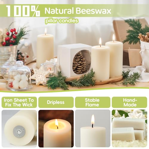 Smokeless and Dripless Beeswax Pillar Candles: Pure natural beeswax pillar candles burns evenly and cleanly, has a high melting point outer coating to prevent any unnecessary wax dripping, stable flame, healthy and eco-friendly candle, when not in use, can be safely stored around your family or pets