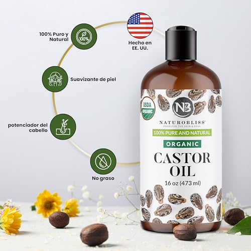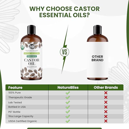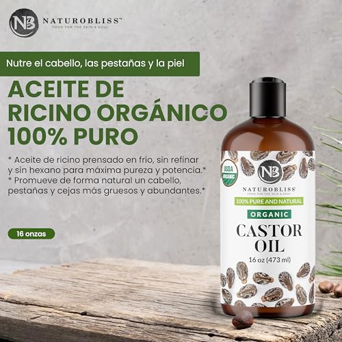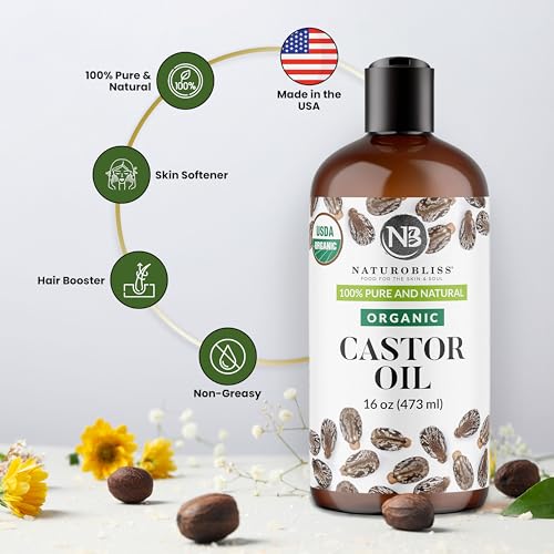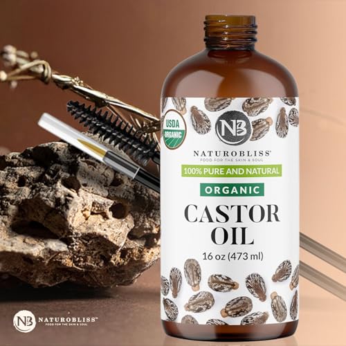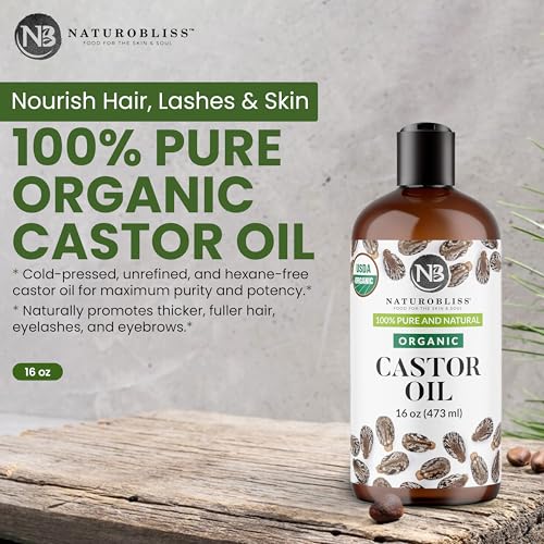 NaturoBliss Organic Castor Oil 16 oz – 100% Pure, Expeller-Pressed, Hexane-Free – Value Size Beauty Oil for Hair, Eyelashes, Eyebrows, Skin & Scalp, with Beauty Starter Kit – USDA Organic, GCMS Tested