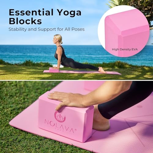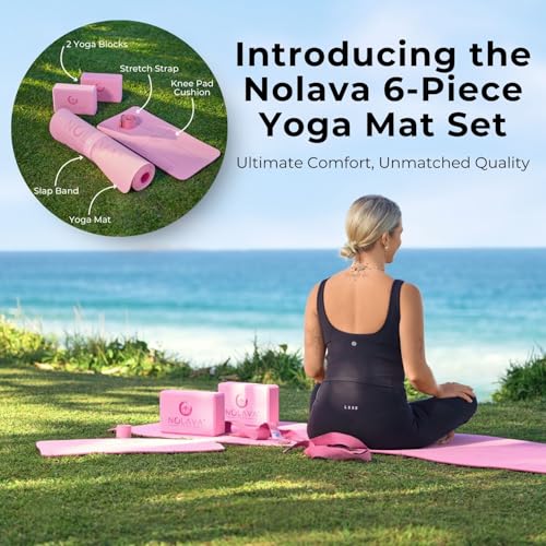 All-in-One Yoga Kit, Thoughtfully Designed This isn’t just a yoga mat with extras. The NOLAVA 6-piece set is a premium, color-matched kit curated for comfort, support, and flow. Includes a non-slip yoga mat 72″x24″, matching kneeling pad, two high-density blocks, a versatile strap, and a mat slap band to keep your mat tidy when not in use.