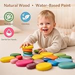 Extra-Large & Safe for Toddlers 1-3: 16 PCS jumbo wooden stacking rocks designed for small hands. Smooth, BPA-free and water-based finish keep playtime safe and worry-free, giving kids the joy of confidence and parents real peace of mind.