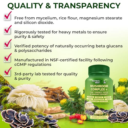 Free from Fillers and Additives: We believe in real ingredients. Our organic mushroom supplement is made with 100% fruiting bodies, without mycelium, grains, or fillers. It is free from rice flour, magnesium stearate, silicon dioxide and other unnecessary additives.