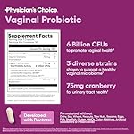 Physician’s CHOICE Vaginal Probiotics for Women – pH Balance, Odor Control, Yeast Balance, Vaginal Flora & Feminine Health – 6B CFU with Organic Prebiotics and Cranberry Extract – 30 CT
