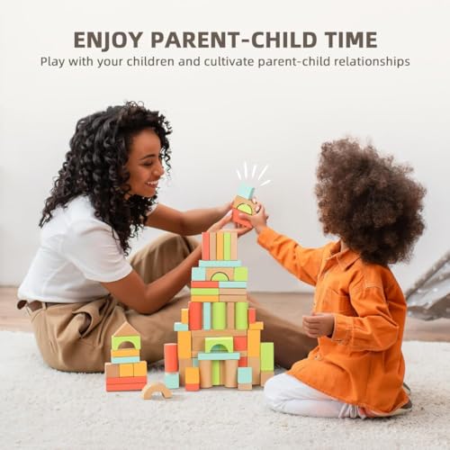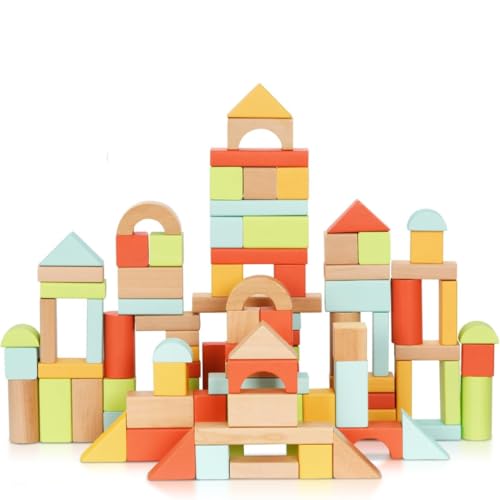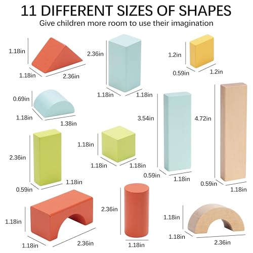 Endless Building Fun – This colorful wooden block set includes 100 pieces in 5 vibrant colors and 11 unique shapes, giving toddlers endless options to create everything from castles and cars to bridges and rockets—all while sparking imagination and creativity.