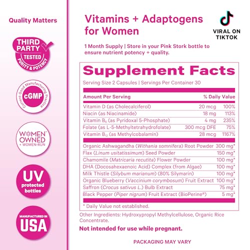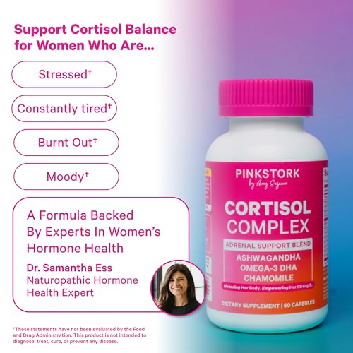 Pink Stork Cortisol Supplements for Women – Adaptogenic Adrenal Support & Stress Manager with Organic Ashwagandha, Omega 3, Saffron, Multivitamins – Mood & Hormone Balance for Women – 60 Count