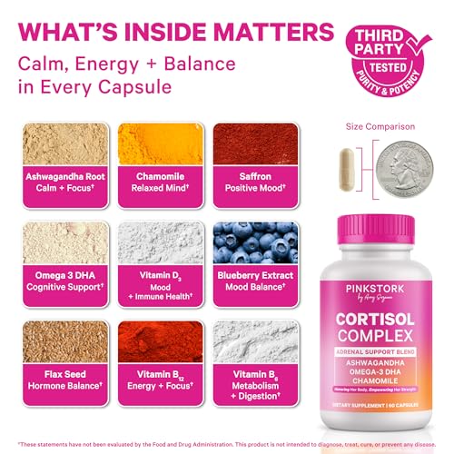Healthy Adrenal Function: Pink Stork’s Cortisol Complex is designed for women who are tired of feeling stressed, moody, burnt out, or constantly drained. Support healthy adrenal gland function and ease symptoms of cortisol imbalance, with just 2 easy-to-swallow capsules daily. Non-drowsy formula, suitable for daytime use.