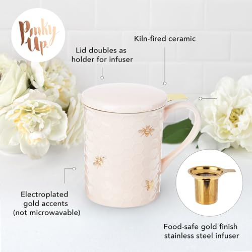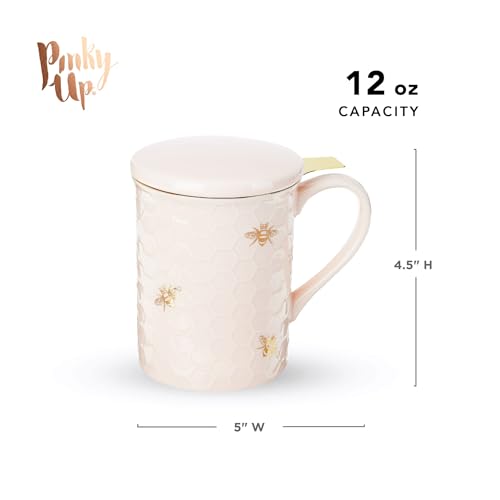 Pinky Up Annette Ceramic Tea Cup with Infuser and Lid, Travel Mug for Loose Leaf Teas, Home Office, Camping, Picnic Party, 12 oz, Set of 1, Honeycomb