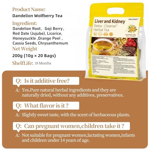 Dandelion Wolfberry Tea - Liver & Kidney Detox Herbal Tea, Summer Cleanse with Chrysanthemum, Wolfberry, Organic Dandelion Root, Cassia Seed, Licorice Chinese Herbal Tea Bag