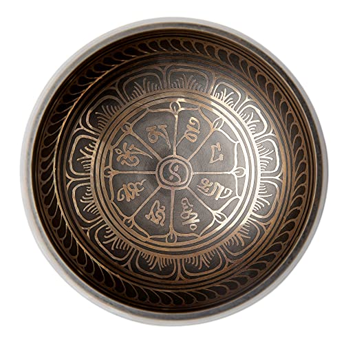 Tibetan Singing Bowl Set 4.2 inch with Holy Buddhist Mantra and Sacred Third Eye Symbol from Nepal~ Antique design suitable for Yoga, Meditation, Sound Healing & Chakra Balancing~ (4.2 Third EYE)