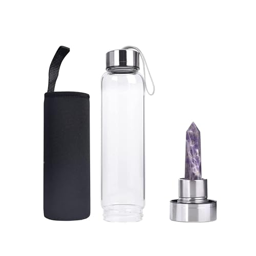 High Quality – Dreamy purple crystal water bottle made of stainless steel cup and high borosilicate glass, unbreakable. Each crystal energy bar may vary slightly in colour and size, sturdy, non-toxic, lead-free, suitable for hot and cold drinks, easy to clean.