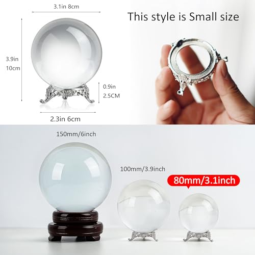 QFkris 80mm Clear Crystal Ball with Stand for Fortune Teller Divination Crystal Sphere for Magic, 3.1inch Decorative Ball for Lensball Photography, Feng Shui