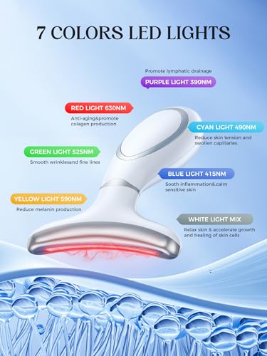 Red Light Therapy for Face & Neck, Face Massager Tool for Anti-Aging, Skin Facial Sculptor, 7-Color LED Phototherapy Device with Lifting, Heat & Vibration, Firming, Rechargeable Beauty Tool