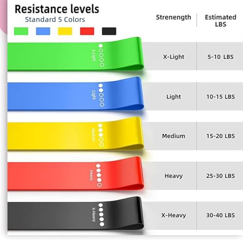 5-LEVEL PROGRESSIVE RESISTANCE:A complete resistance band setwith 5 color-coded resistance levels (from light to heavy), suitable for all fitness stages, from beginners to advanced users