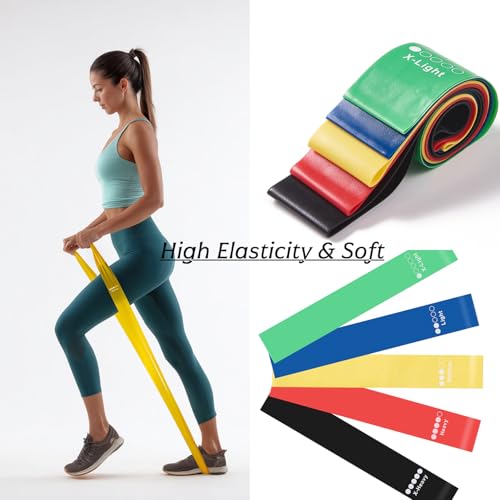 Resistance Bands for Working Out, 5-Pack Elastic Loop Exercise Bands for Strength Training Stretching, Home Gym Equipment for Physical Therapy Pilates Yoga, Glute Leg Arm Workout Kit for Women Men