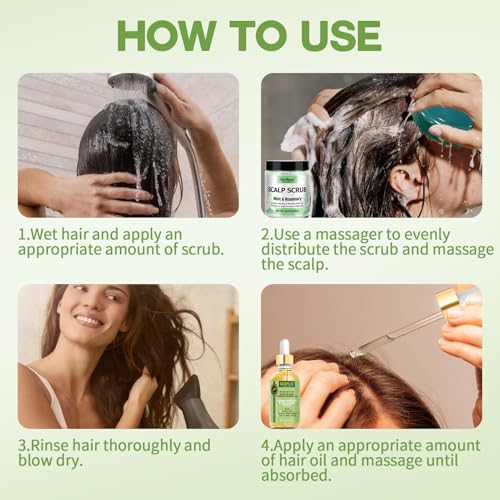 COMPLETE SCALP CARE KIT: Each purchase includes our premium scalp scrub,a rosemary oil for hair, a silicone scalp massager. You can get a salon-quality dry scalp treatment at home. Your scalp will feel renewed