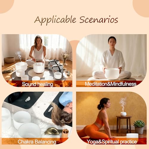 Sound Bowls Meditation Set for Relaxation – Crystal bowls for sound healing release pure vibrations that balance chakras, clear energy, and improve focus. Perfect for yoga teachers, sound therapists, or meditation at home.