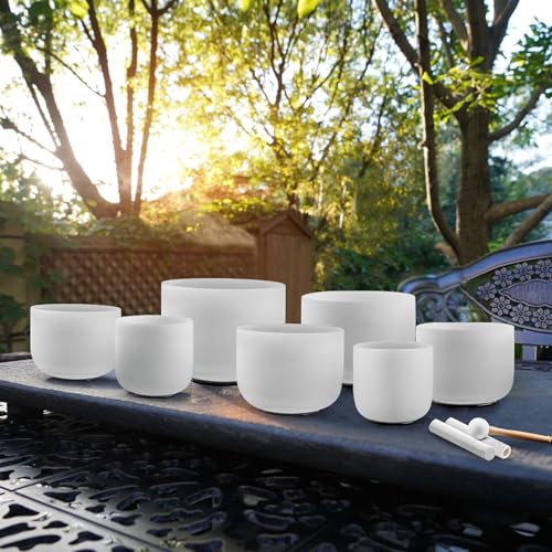 RYAN DVAN 432Hz 7-12 inch Crystal Singing Bowl Set of 7 with Free Carrying Case, Frosted Quartz Sound Bowls for Chakra Healing, Meditation,Yoga,Sound Therapy,Mindfulness,Relaxation & Stress Relief