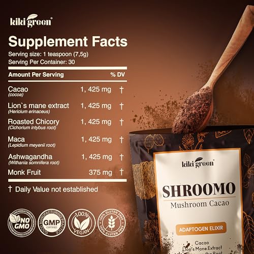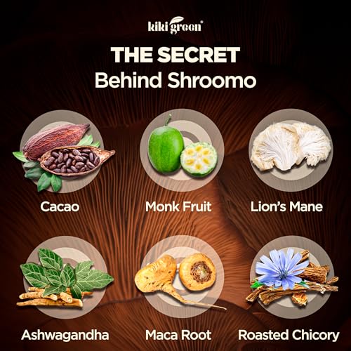 Shroomo Mushroom Coffee Alternative – Master Blend of Lion’s Mane, Ashwagandha, Maca Root, Roasted Chicory, Monk Fruit For Mental Clarity, Energy, Focus – Cacao Hot Chocolate Drink 8 oz by KIKI Green