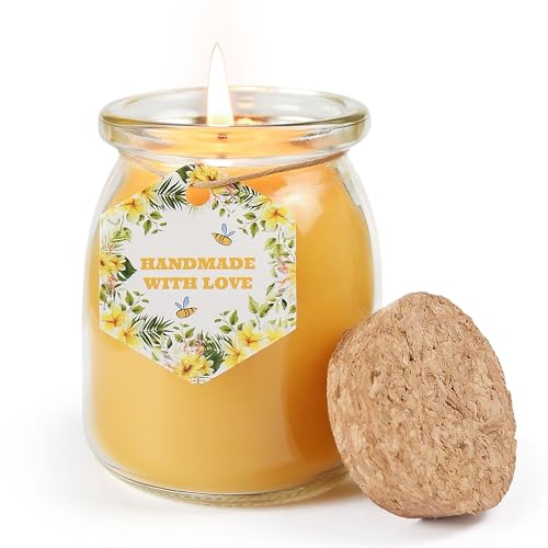 Natural Beeswax Candles, Unscented Bees Wax Candle in Glass Jar, 4.8oz 32 Hours Long Lasting, Pure Cotton Wick and Non-Toxic for Stress Relief, Home Gifts