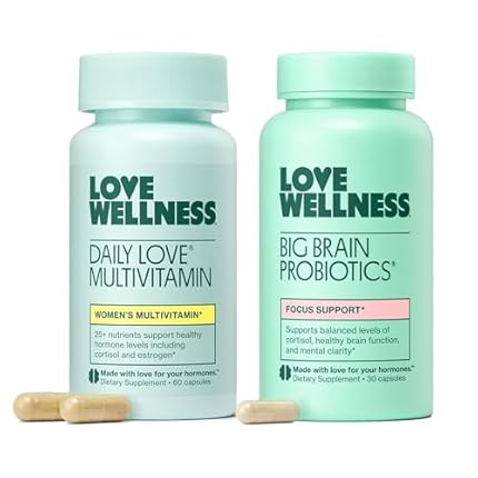 Love Wellness Daily Love Multivitamin & Big Brain Probiotics | Mind and Body Duo | Womens Vitamin and Probitoic