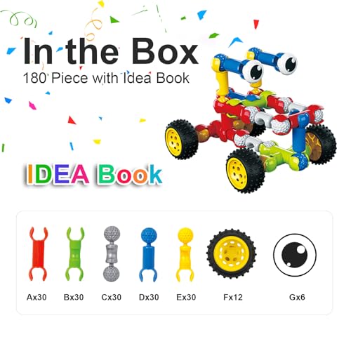 180 Piece Large Pack: These toy building sets include 180 piece with multiple colors & shapes, they could build into variety of patterns such as race cars, robots, trucks, dinosaurs different structures, or anything kids dream up. including a step by step ideal booklet with instructions to teach kids how to build , coming a large storage box as well for quick and convenient cleanups .making it the ultimate STEM building toy for kids age 4-8 and perfect gifts for 5 6 7+ year old boys in classrooms, family play, or friend gatherings.