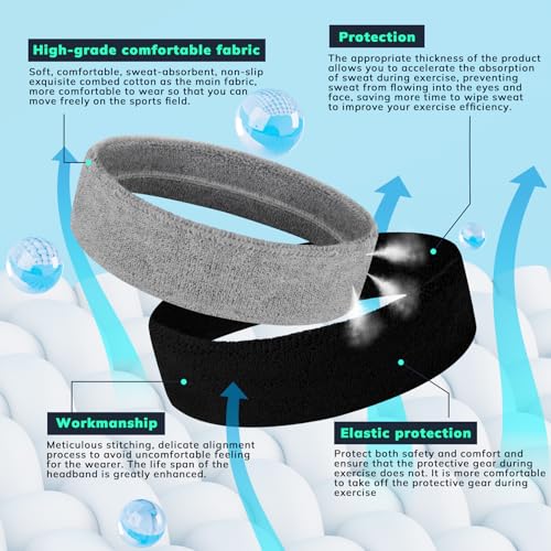 Sweatbands Sports Headband for Men & Women – Terry Cloth Moisture-Wicking Sports Towel Headband for Tennis, Basketball, Running, Gym, and Fitness Working Out