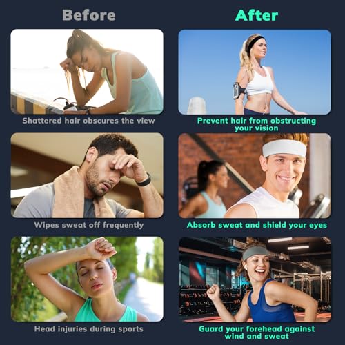 ★ EXCELLENT SWEAT WICKING PERFORMANCE – Our sports sweat wicking headbands are made of a high quality cotton and spandex nylon blend that absorbs sweat quickly, helping to keep it absorbed and out, keeping you fresh and dry during your workout. This headband keeps sweat and hair away from your face so you can focus on your workout.