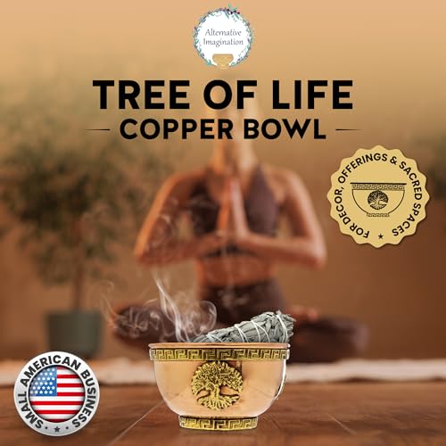 Tree of Life Copper Bowl – Offering Bowl for Altar or Ritual Use, Incense Holder and Smudge Kit, Home Decor – Holds Incense, Offerings, Healing Crystals, Water – Smudge Pot for Altar Supplies