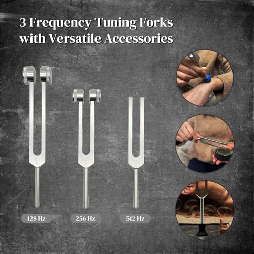 Tuning Forks for Healing Set (128Hz, 256Hz, 512Hz), Yoga and Meditation Accessories & Sound Therapy Devices, Sound Healing Instruments for Chakra, A Good Gift for Women and Meditation Beginner