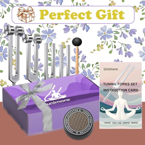 Tuning Forks for Healing Set, Includes 128Hz, 136Hz, 256Hz, 384Hz & Activator, Gem feet, Yoga and Meditation Medical Grade Accessories, Sound Therapy Music Tuning Instruments with Gift Box