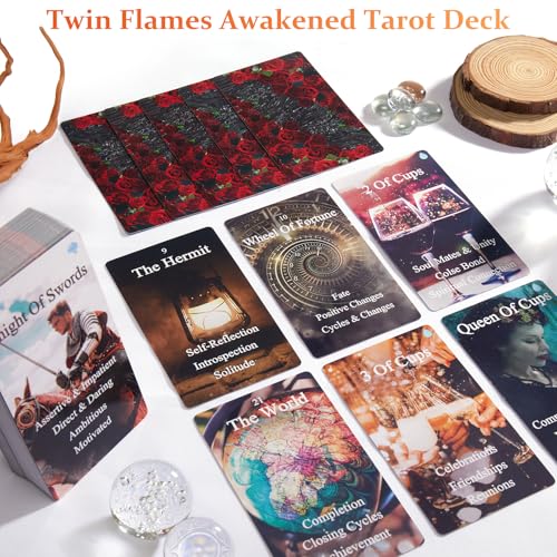 Unique Tarot Cards for Beginners with Meanings on Them 78PCS Divine Twin Flame Oracle Tarot Deck Set with Elements and Message on Them for Energy Life Love time Spiritual Journey and Career