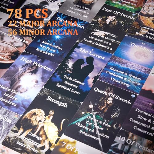 78PCS Complete Tarot Deck:You will receive 78 cards in traditional tarot format: 56 Minor cards come with 4 suits: cups, wands, swords, and pentacles, along with the court cards which are pages, queens, and kings; 22 major cards indicate important events in your current situation