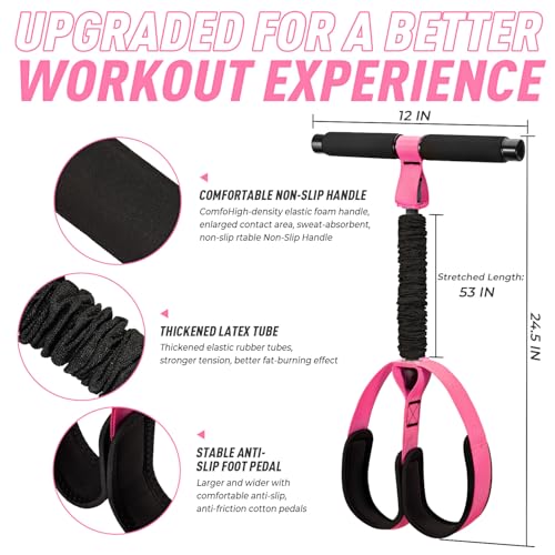 Upgraded Durable Pedal Resistance Band with Handle, Thickened Latex Tubes and Soft Foam Fabric Foot Pedal, Sit Up Exercise Equipment for Abdomen, Waist, Arm, Core/ABS, Leg, Physical Therapy