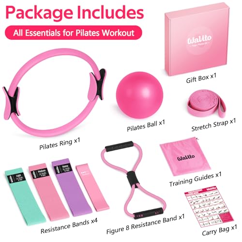WALITO Home Pilates Kit for Women,Pilates Ring Set with Magic Circle,Resistance Bands,Figure 8 Workout Bands,Mini Ball, Compact Toning Fitness Essentials Starter Set Accessories Gift