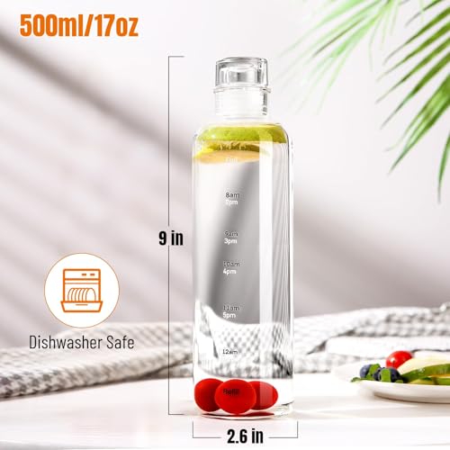 Water Bottles with Lids and Time Marker,Simple Modern Transparent Glass Water Bottles, 17oz Glass Cups,for Juicing for Office, Gyms, Cafés, Gym Essentials Women