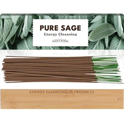 Premium Sage Incense Sticks with Energy Cleansing Holder - Charcoal-Free for a Clean Non Toxic Burn - Smudging, Negative Energy Purification, Natural Aromatherapy Home Fragrance, 30 Incenses