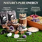 Witchcraft Supplies Kit, 150Pack Wiccan Supplies and Tools Witchy Gifts for Beginners, Dried Herbs, Crystals, Candles, Green Witch Altar Starter Spell