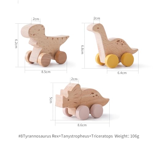 Wooden Dinosaur Cars Montessori Toys for Babies Baby Push Car Toys Wooden Toy Vehicles Development and Infant Grasping Montessori Toys(3PCS)