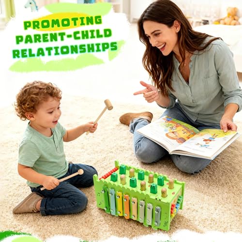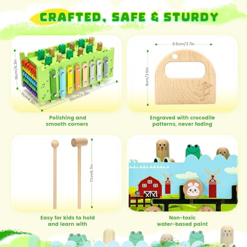Wooden Montessori Toys for 1 Year, Develops Motor Skills and Interactive Skills, Educational Toddler Xylophone Learning Activity Hammering & Pounding Toys Crocodile