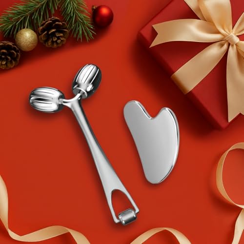Yeamon Gua Sha Facial Tools and Face Roller Set, Facial Massage Tool for Women’s Skincare Routine,Cooling Stainless Steel Face Sculpting Eyes Roller Guasha for Daily Use or Self-Care Gift for Women