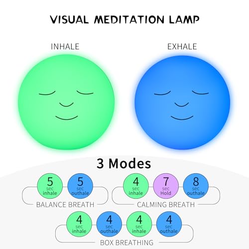 ►[Breathing Lamp for Mindfulness]:Science verified,4-7-8 Calming breath/5-5 Balance breath/4-4-4-4 Box breath,With Speaker,Volume +/-,Visual Meditation tool for Anxiety Relief