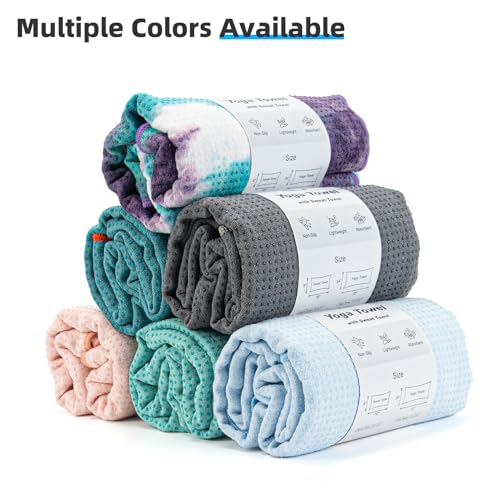 Eunzel Hot Yoga Towel Non Slip Yoga Mat Towel Non-Slip Sweat Absorbent Microfiber Towel for Hot Yoga, Pilates and Workout 72" x 26.5", Purple & Green