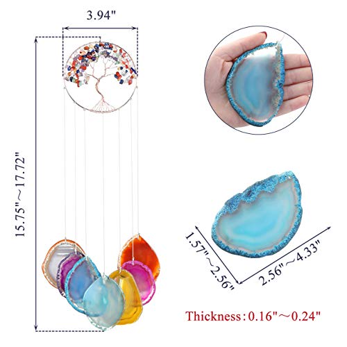 Yoption Tree of Life Agate Slices Memorial Wind Chime, 7 Chakra Natural Crystal Windchimes for Home Garden Decoration Ornament, 15.7-17.7 inch